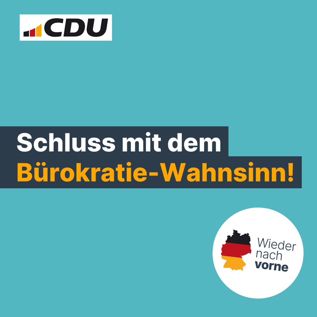 - Wir beseitigen mit Entrümpelungsgesetzen und Bürokratie-Checks überflüssigen Papierkram. Statistikpflichten und Doppelstrukturen bauen wir ab.